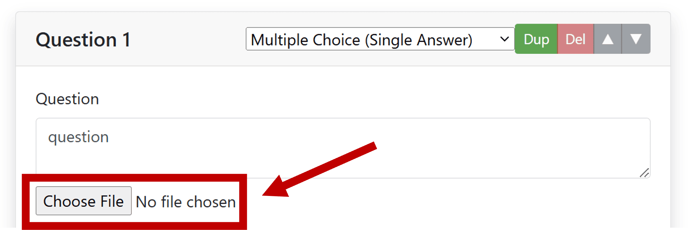 - Multiple Choice (Single Answer): Defines a multiple-choice question where only one option can be selected as the correct answer.